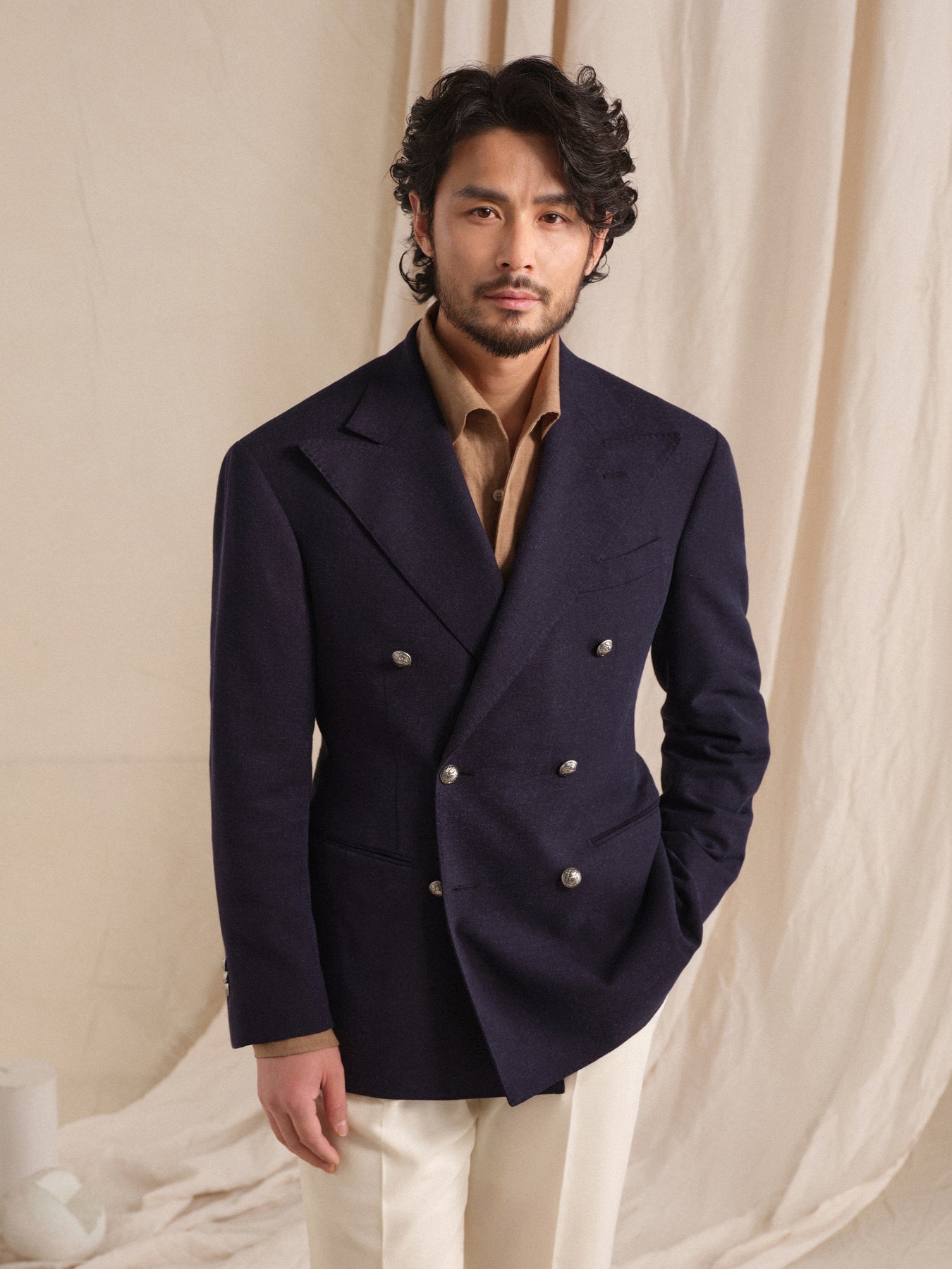 • Power is reflected in the details, complementing the wide-shoulder cut.
